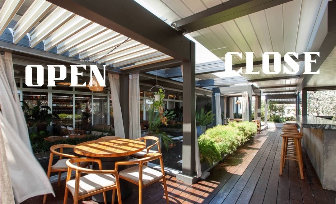 Louvered Roof Restaurant Pergolas that can be opened and closed