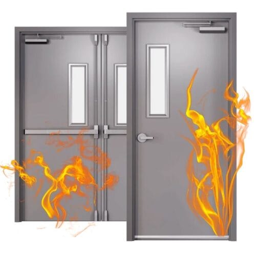 - The Door Slab: The main component, made from fire-resistant materials such as aluminum, fire-rated glass, hollow metals (such as steel), or occasionally wood.