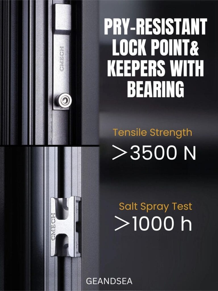 At Grandsea, we go beyond standard safety features. Our unique U-shaped locking rods and mushroom head lock points keep the sashes tightly secured against both positive and negative wind pressure. This innovation provides peace of mind, knowing your home is protected from severe weather while enhancing overall security.